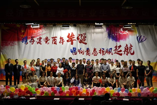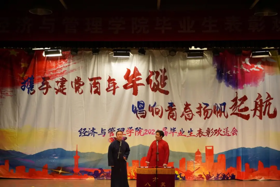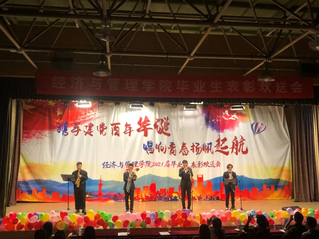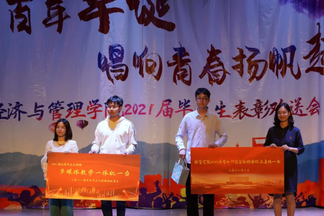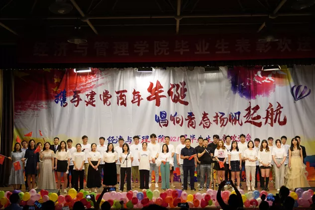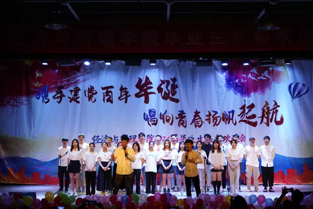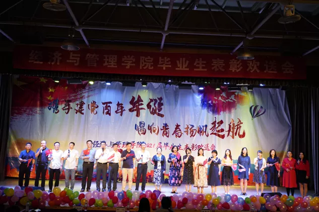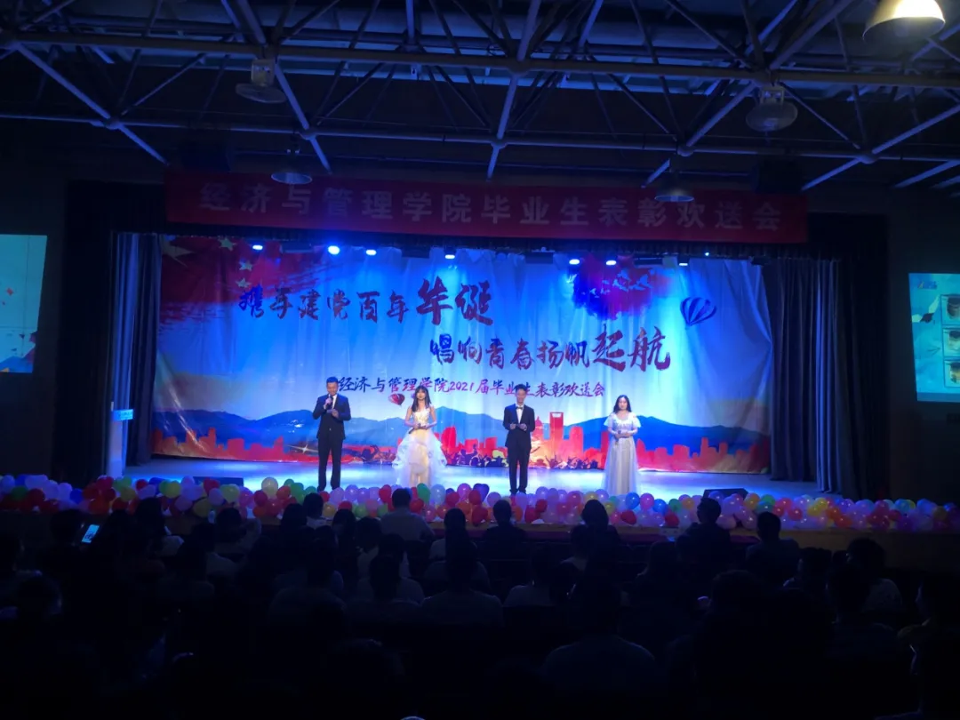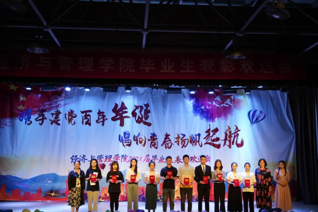 为欢送我院2021届毕业生,表彰优秀毕业生。6月3日晚6:30,我院“携手建党百年华诞,唱响青春扬帆起航”2021届毕业生表彰欢送会在鸣飞堂顺利召开!出席本次活动的有经济与管理学院党委书记刘春霞,院长刘戈,副院长焦爱英,副院长曹琳剑,副院长王磊,经济与管理学院学生工作办公室全体辅导员老师以及毕业生班主任等。